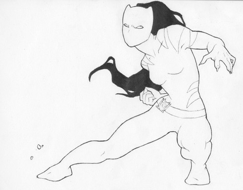 Pretty good first attempt Nav! I think a little more practice and emphasis with the body proportions? So it matches her head well, unless she is a brute and strong masculine women, I understand.