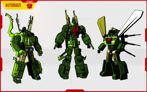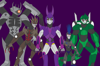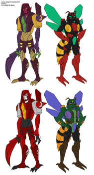 The Beetra's (A.K.A Deluxe Insecticons), Beet-Gadol (Barrage), Beet-Vadam (Ransack), Beet-Gugal (Chopshop), Beet-Papil (not released as a Transformer) & Beet-Zeguna (Venom) in colour.Textures used are: