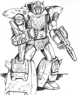 Inks for Jhiaxus. His pose is based on the cover of Transformers G2 #7. His design is my own I used in a previous pic [link]Please feel free to colour, just cred and link me and let me know so I check it out.