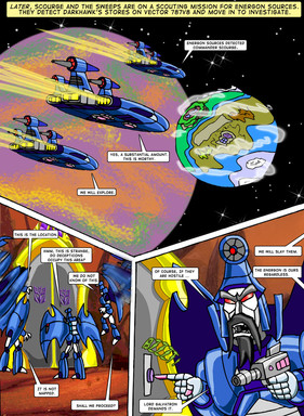 This is based on short text only story from the Transformers UK comics, which briefly explains events happening on Cybertron after the Ark & Nemesis spacecraft's, and their respective crews leave Cybertron, leading up to Operation Volcano in the Target 2006 story.The awesome colours have been done by