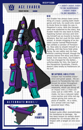 Thanks Juan. Yeah, that's Hasbro for you. They have a habit of doing things like that, I remember there being Aerialbot Skydive and Decepticon Predator Skydive too. I suppose you could have him in the background without mentioning his name lol.