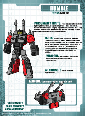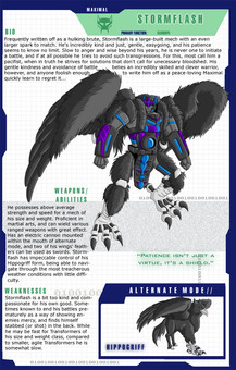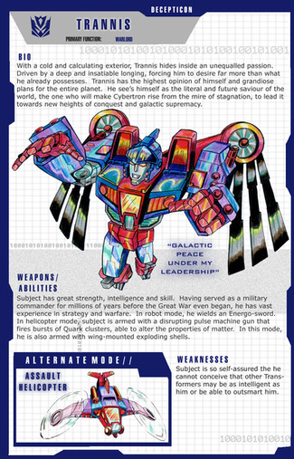 First and foremost, I must state that I did not draw this guy. I found a small character sheet of his toy here www.yusha.net/dagwon/mechanic2… which I enlarged, cleaned up, then applied a photomanipulation technique to make it look like line art and then I applied a digital inking technique, before giving him some quick and dirty colours.His character is based on an obscure character created by Simon Furman, whose only appearance is in Furman's novel Alignment. If your not familiar with alignment, its a story that takes place between G2 and Beast Wars, and is definitely worth a read.