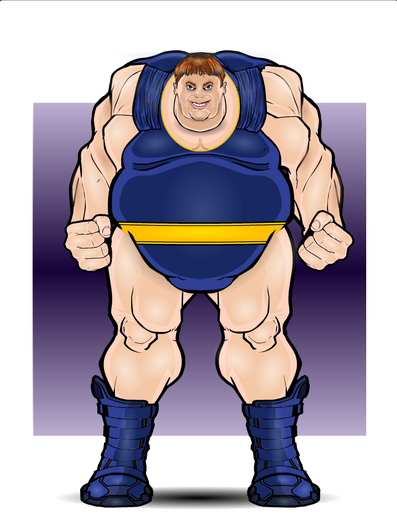I really dig this attempt at the Blob, however it shows that so much focus is on muscle that people forget how to do fat. I am a fat guy, yeah I called myself fat, and I have been working on some sketches for a character of myself for a webcomic idea. Even though what I am about to say is a critique, I do dig the drawing.