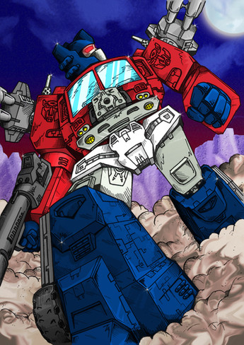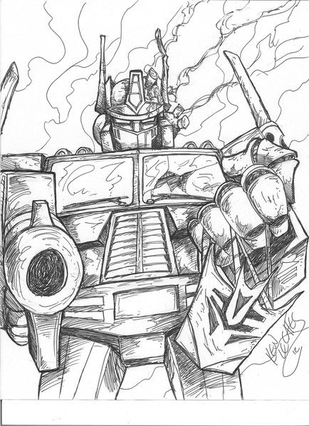 Rushed the inks a bit on this one. You can probably see round his chin where I've gone over with the rubber whilst the ink was still wet, and some of the paper has ripped.His pose is based on an image from the cover of Transformers #171 (Marvel UK) drawn by Jeff Anderson.