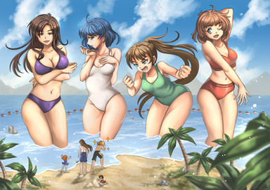 A commission done by .Nothing like the sight of two large lesbians having a splash fight. One of them needs to be careful as to not create a tidal wave while they're having fun.