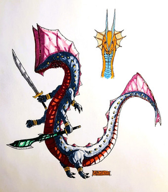 Been a long time since I've drawn, have had a lot of developments in my personal life. Very transformative year with a lot of ups and downs, but things are looking great now.Hoping to get back into my art, combined numerous old designs and ideas for this take. Calling this guy Man Moose, Merker of Messiahs. Wanted to do an absurd yet cathartic deconstruction of a lot of classic god slayer type characters. Hoping to use this as the base of all future designs of this character. The limbs take inspiration from Kamen Rider Shin Prologue, Pacific Rim, and Barioth's great sword from Monster Hunter. Head is inspired by the dragon Zoalord from the first live action Guyver movie and Shenron from Dragon Ball. Colors were initially inspired by Snorlax but the more I added the more 90's-tastic it became. Body structure is based heavily off of that of Diablos from Final Fantasy 8. Sort of see this guy having an over the top break dancing fighting style, think Zinogre from Monster Hunter combined with Goro Majima from the Yakuza games.