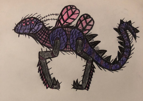 8. This guy is REALLY old, a sort of cannon fodder kaiju used by numerous wasteland warlords. I originally called them "Iron Fangs" and depicted them as sort of giant hyenas with metal collars similar to the yolks on an ox. These guys are now more like quilled badgers with basilosaurus like heads and have even more cuffs and collars now. Still working on these things, but I like the direction I'm going in.