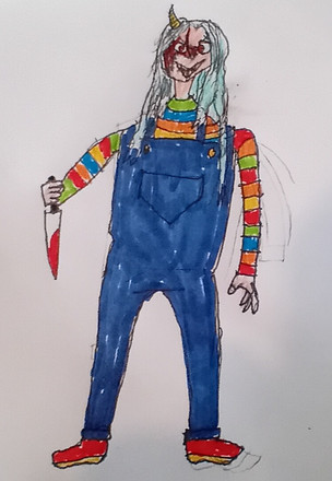 #horror #traditionalart #childsplay #chucky #halloween #halloweencostume #horrorart #traditionaldrawing #traditionalmedia #traditionalartwork #hazbin_hotel #hazbinhotelniffty #hazbin_hotel_fanart #niffty_hazbin_hotel
