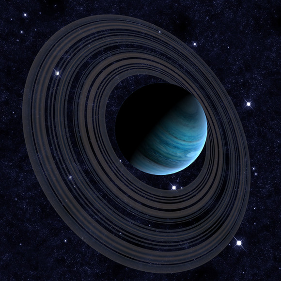 Vanadis is a Mini-Neptune, at 27,546km wide and 26,844km tall. Trace amounts of methane contribute to the planet's aquamarine colors, but a lot of the blue color comes from rayleigh scattering. The rings are composed of water ice stained with hydrocarbons. Of 27 moons, only two are significantly large: Gimli, whose cryovolcanism is a contributor to a diffuse outer ring, and Ragnarök, a large ice moon that has a subsurface ocean and a thick nitrogen atmosphere. Their 2:1 orbital resonance produces large quantities of tidal heating.