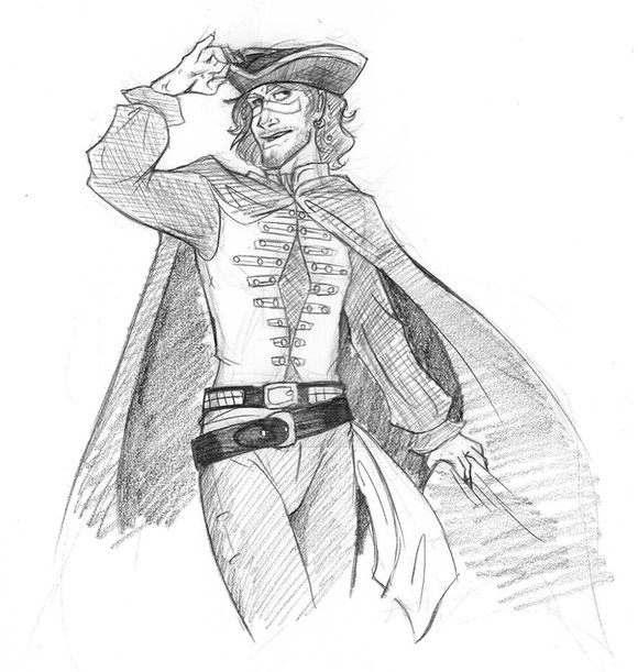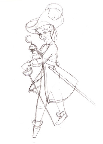 Hee! I am loving his expression. So, "I'm jaunty! I'm dashing! I could be a better pirate!" I would love to see this colored. And this whole Peter/Hook thing? Lots of fun.