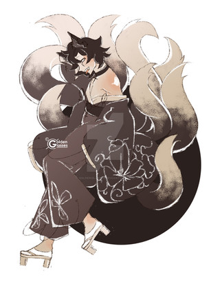 The wind whipped at her face with acidic stinging as it battered her from her head to her numerous white fox like tails.