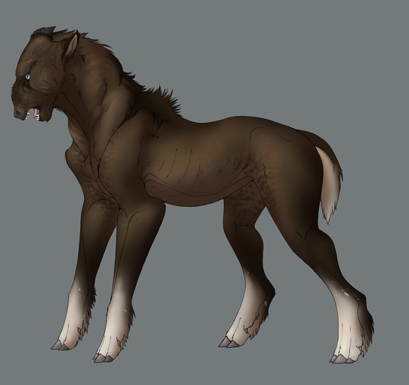 I see horse, oryx and wolf. Impossible in nature of course... but it would make an awesome genetically engineered pet! That stabs you in the spleen when you forget its breakfast! And then eats all the food in your fridge. And the fake plants. And poos on the carpet... Needs a background, btw.