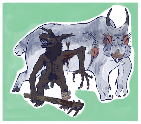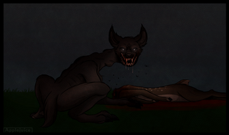 Yikes! Awesome! There are just too few believers out there. They say that this badass beast is a wolf with mange! Dumb bastards. The goat-sucker is real!! Also, great drawing! The dead goat looks so realistic!