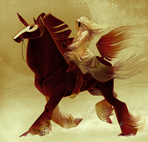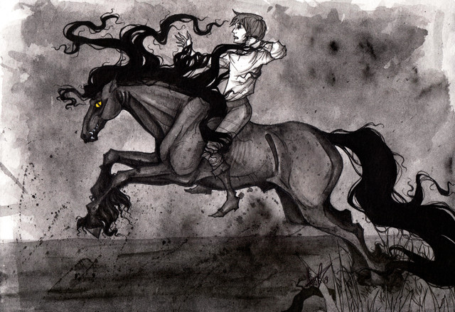 I just love the drawing! The horse kinda scares me tho... looks like a specter O.O
