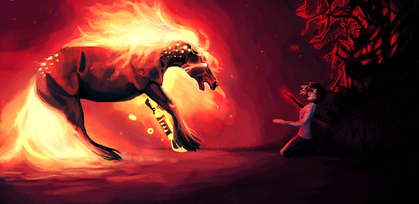 I adore how you do fire and shading. The horse`s face looked funny at first, bt when you look at it longer.....it gets creepy. I mean his eyes don`t have pupils!