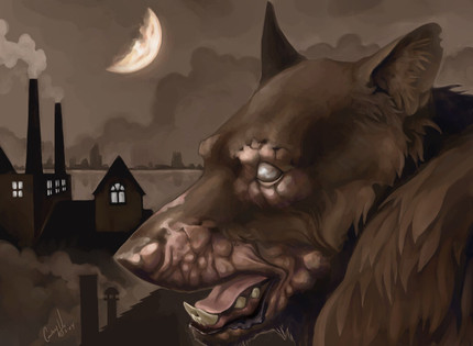 I love the layout of the characters and the shading, the contrast between the fire and the darkness of the rest of the piece is awesome.