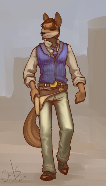 KINDA reminds me of Rango or something like that... but that's a good thing! he makes a kickass cowboy whatever he is and I want that shirt so bad now.