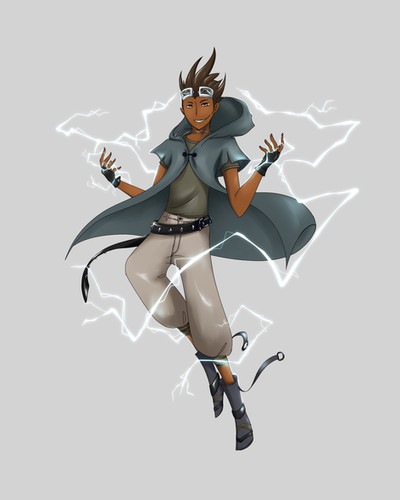 Haha! I think these are all a dark brown on a multiply layer, except for the light blue lines around the lightning. I sketch first, then ink (I used Manga Studio 5 for this one, which has a lot of tools for smoothing out your strokes), then color.Β