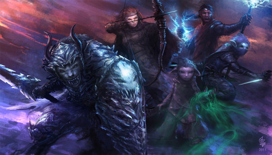 Very nicely done! I love the details of armor/clothes, bow, and faces. I like the Sylvari's expression too, and his hands are well done. I need to get better at hands. And faces. But this is terrific work!