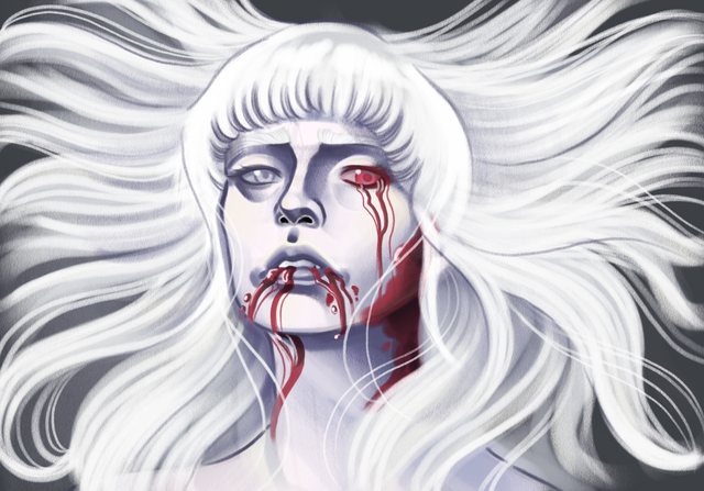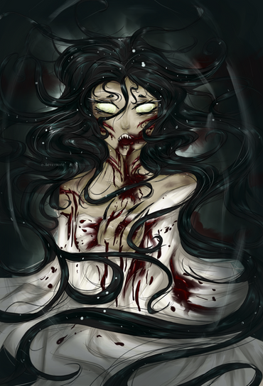 I like how her hair kind of melds with the clouds in the background. I also like how you kept the color kind of neutral, because Stoker's character descriptions in general (barring Dracula himself) are very vague. I've seen her depicted with almost every natural hair color ever. :\