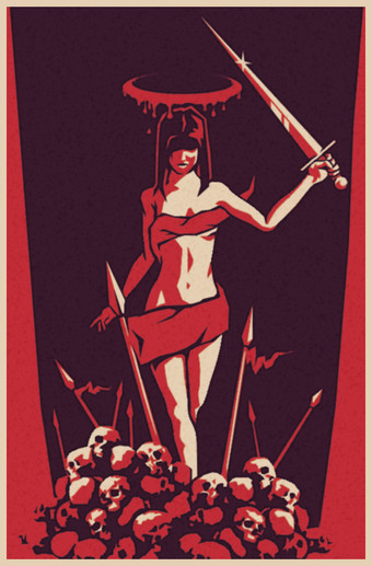 This is beautiful! I love the composition; the way her hair flows around the blood dripping from the head is so striking!