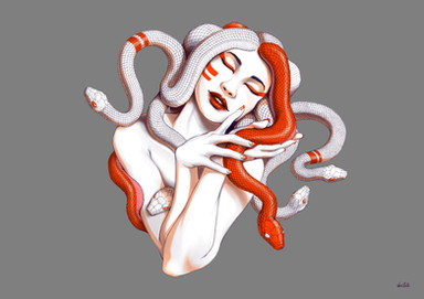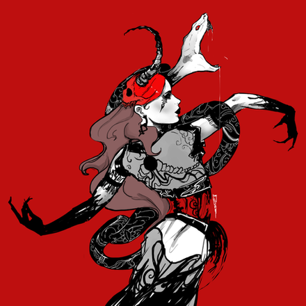 that is beautiful. the whole flow of the piece has a very large graphic design feel. makes it very unique. Β the curves in this really give it grace.... and that's saying something considering the severed head.