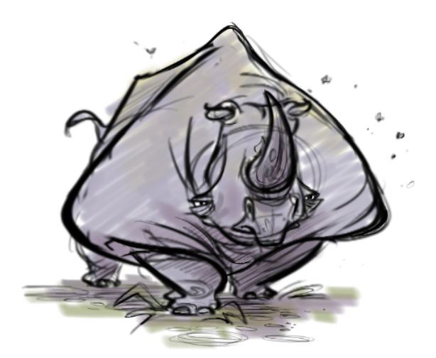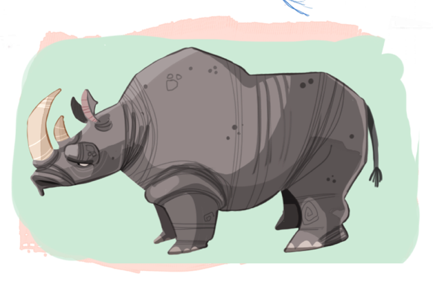The style reminds me of the Rhinos in a game called "Tak and The Power of JuJu". Did you get inspiration for the style from there or is it just a coincidence?