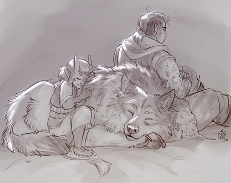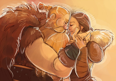 This is gorgeous! What stunning character designs, and I love the emotions you've conveyed in their expressions. I can't help smiling when I look at this piece.