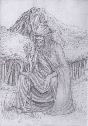 This is really good! I love the detail in the grass, the trees and the old druid, the shading is pretty good too, nice work!