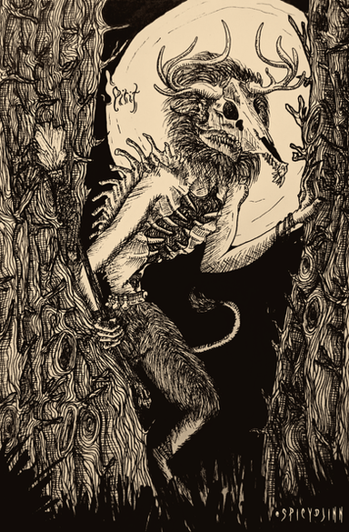 #deer #fantasy #folklore #forest #ink #monster #mytology #skull #inktober