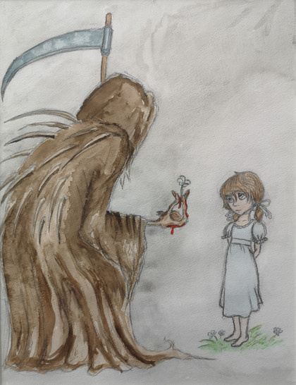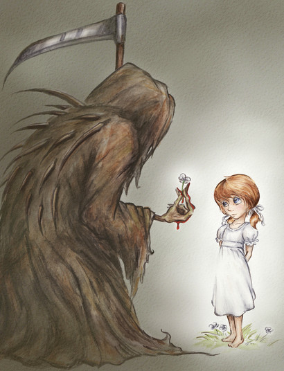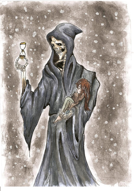 Even the Death has a heart to be ashamed of his ''job''.And even a simple person,a little girl as i can see,can understand with her innocent soul,that it's only his eternal duty.And people have learned to be compassionate,even if we have hearts of stone,to be understanding when it comes to eternity.Bravo