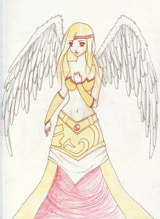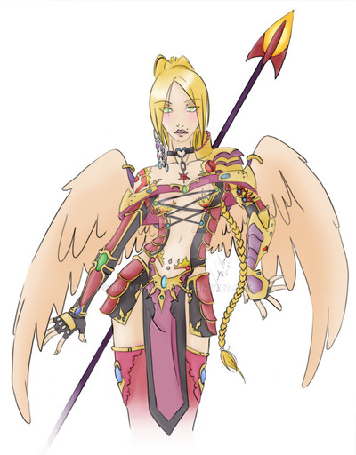 molto bella come art, ma secondo me hai marchiato troppo l'occhio destro (anche perchΓ© Γ¨ l'unico che si vede), per il resto gj, le ali sono semplici ma molto belle e l'armatura Γ¨ ben disegnata, i miei complimenti