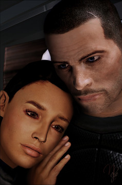 I really love the perspective, overall lighting and color palette! Also the very crisp quality of your picture, even though that's not really my thing usually. Does the sharp aspect of the textures come from the models or is that post-processing from your end? Anyway, great job, and I really like your Jane Shepard from the other renders you did. Oh and the added reflection on his hair is very nice too, really adds to the realistic look.