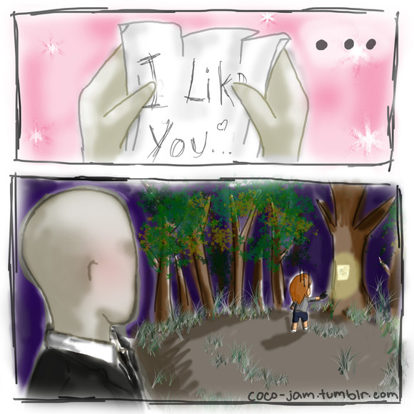me: *Turns around seeing slender and blushing //This is a dream come true...// I think to myself even tho he can read my mind