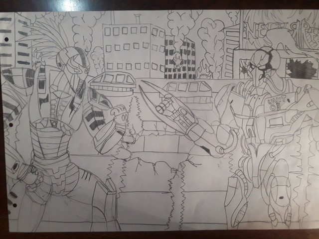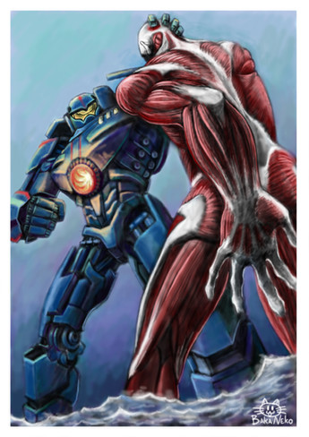 I was bored today so i decided to do a crossover drawing between Pacific Rim and Attack on Titan.Inspiration was cause the robots in Pacific Rim are called Jeagers, and the last name of the main character in Attack on Titan is Jeager, so yeah :I