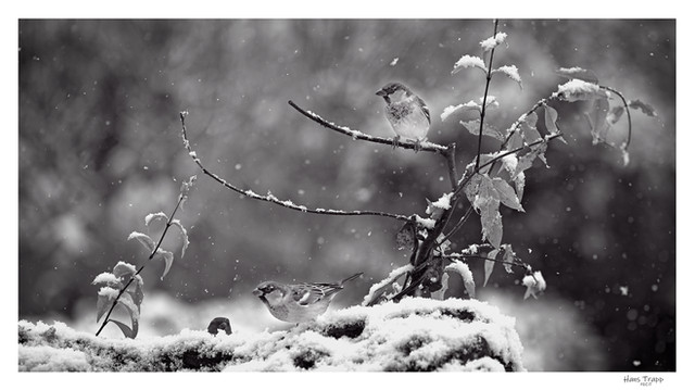 I love this, perfect DOF and I like the opposing positioning of the chickadees, like rush hour traffic..but better