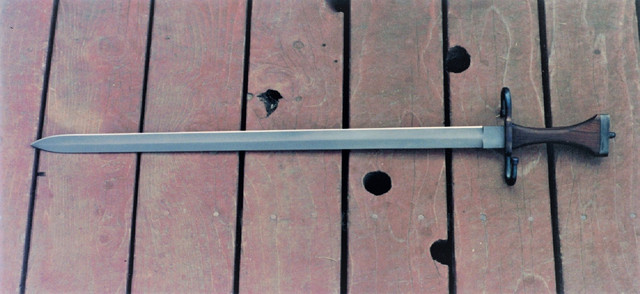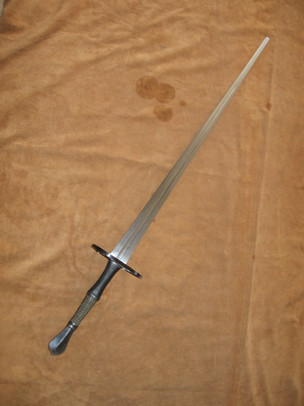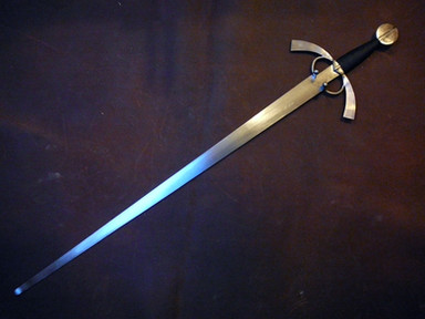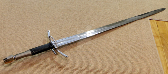 German two handed sword. Hilt is plain wood carved a bit fancy with steel quillions and pommel.Related content