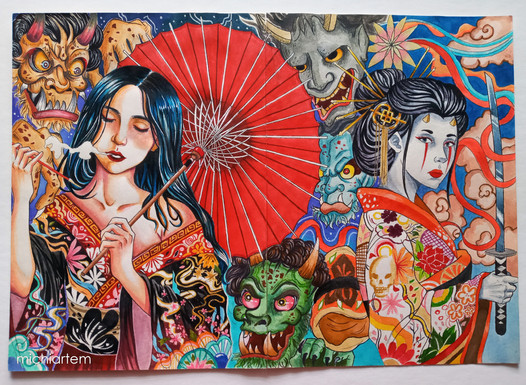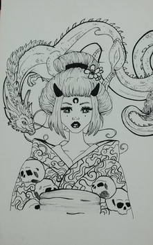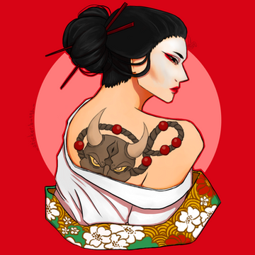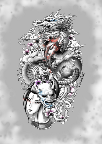 #tattoo #2025 #demon #digitaldrawing #digitalillustration #geisha #japanesegirl #originalcharacter #peonies #portfolio #tattooedgirl #yokai #neotraditional #geishaart #drqgon #neotraditionaltattoodesign