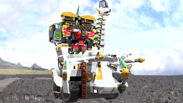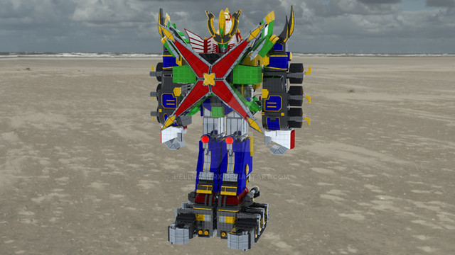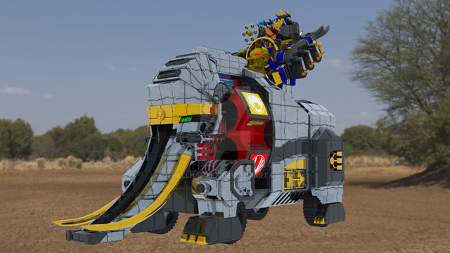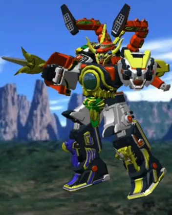 Time Force Megazord Q-Rex Rider / Riding Time Robo from Power Rangers Time Force / Mirai Sentai Timeranger.Time Force Megazord Mode Red can ride on the Q-Rex's back. Its main weapons are the Q-Rex Lasers on its back and a giant laser that fires from its mouth.