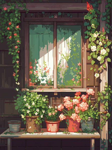 #8bit #bench #blue #digital #digitalart #digitalpainting #door #dystopia #flower #future #green #illustration #light #pixel #pixelart #plants #red #retro #sun #sunflower #window #8bitart #aseprite #garden #gardenflowers