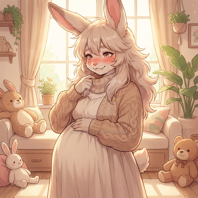#bunny #furry #anthro #anthroart #anthropomorphic #canine #characterdesign #digitalart #female #fluffy #furryart #furryfandom #fursona #greywolf #pregnant #shewolf #wolf #wolfart