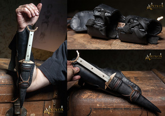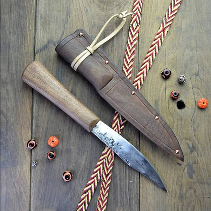 I enjoy the little details. The border on the sheath and the punch work on the pins are very effective.