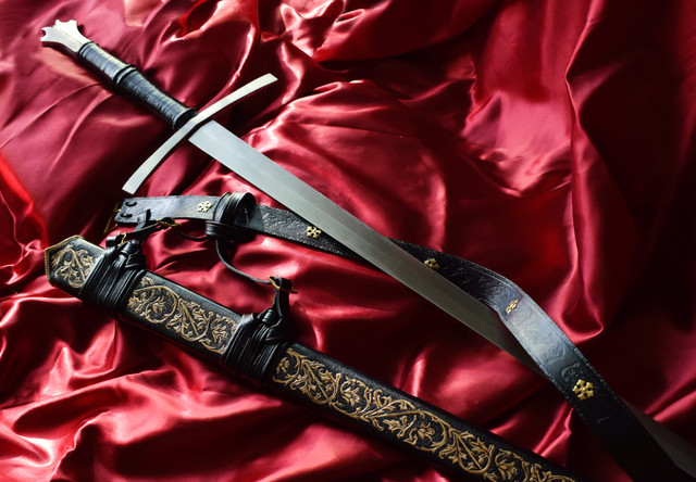 It's always a pleasure to make medieval stuff, but when I have the opportunity to forge a sword, now that's one of the greatest challenges and greatest of joys a smith can haveI forged both of 5160 with iron accessories. The falchion is 76 cm long and just a few grams over 1 kg. The dagger is 42 cm long.