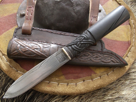 The sheath is hand sewn of thick cowhide.