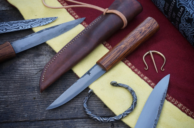 Midget seaxA freshly finished damascus steel cutter. 🙂