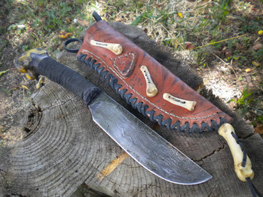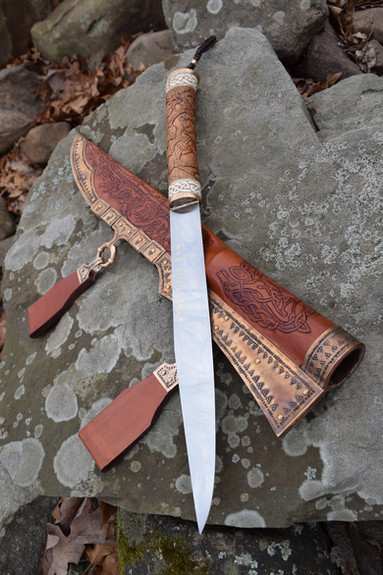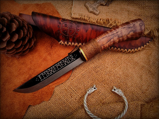 It is 28.5 cm / 11.5 inches long with a 16 cm /6.3 inches long blade, which I forged of 5160. The handle is full tang, made of stabilized burl.