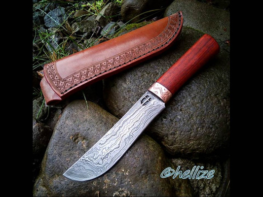 #damascus #pattern #steel #wood #patternwelded #padouk #bronze