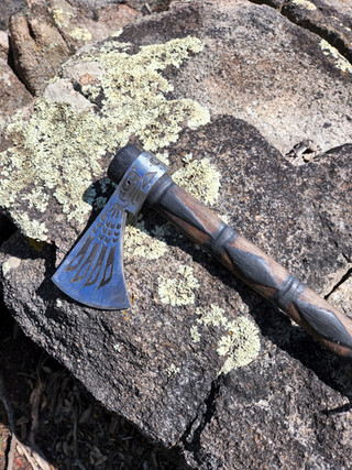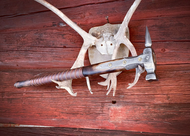 The axe head is 18 cm/ 7 inch long, with a 7.5 cm/ 3 inch long edge. The spike is about 6 cm/ 2.4 inch.