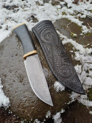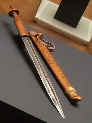 A medievalish dagger with Fossilized oak handle. It is thousands of years old.