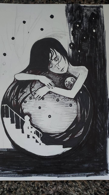 She sits by the window gleaming in her wear, night is she a smooth breath of air!!credit to the awesome artist to whom the original piece belongs this one is just a copy!!!